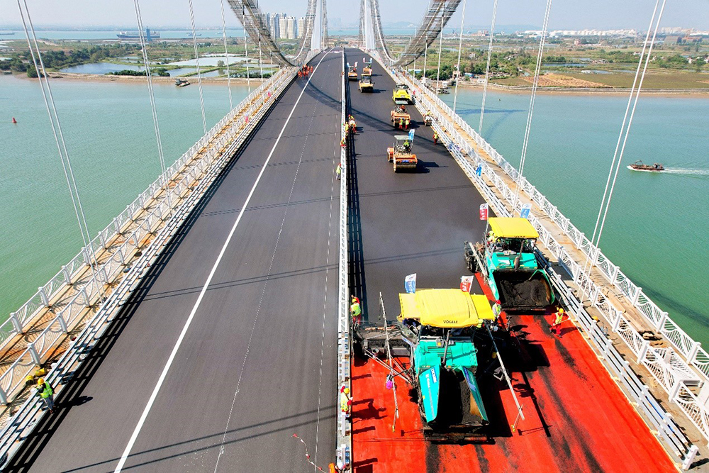 智翔公司攻克鋪裝技術(shù)“卡脖子”問題 東江南支流港灣大橋橋面鋪裝工程驚喜開年