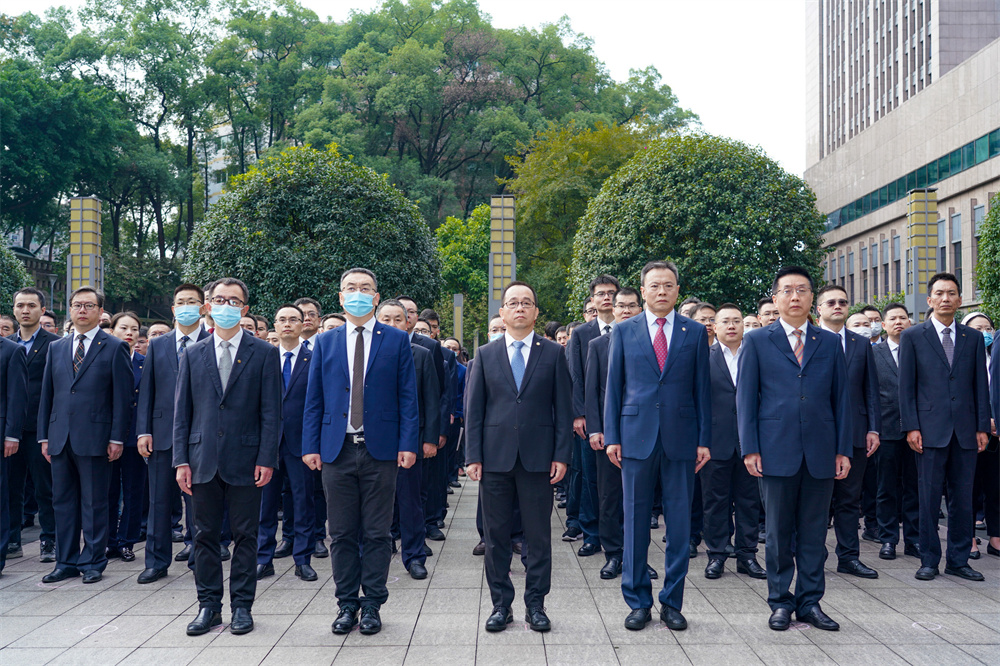觀看集團(tuán)繆建民董事長(zhǎng)講話并舉行“公司日”在渝升旗儀式