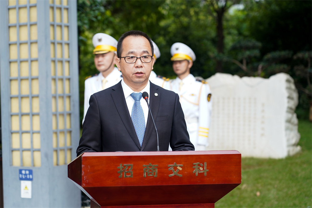 升旗儀式上,身著白色制服的儀仗隊(duì)員護(hù)著國(guó)旗、招商局旗,邁著整齊的步伐走向升旗臺(tái)。在《國(guó)歌》和《招商局之歌》的莊嚴(yán)歌聲中,五星紅旗和招商局旗先后冉冉升起,迎風(fēng)飛揚(yáng)。