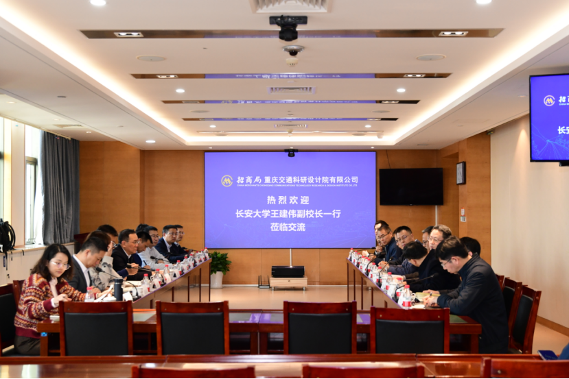 長安大學(xué)社會合作處處長楊紅斌,西安長安大學(xué)工程設(shè)計院有限公司總經(jīng)理劉紅平,招商交科科創(chuàng)中心主任唐勝傳,首席數(shù)字官、數(shù)字化中心主任周健,招商路檢總經(jīng)理黃福偉,物康科技總經(jīng)理孟利波及有關(guān)研究院人員參加座談。