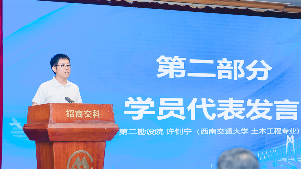來自第二勘設(shè)院和隧道研究院的許釗寧、梁婳婳作為學(xué)員代表發(fā)言,紛紛表示要以奮斗者的姿態(tài),迅速適應(yīng)新環(huán)境、轉(zhuǎn)換新角色、勝任新崗位,讓自己在招商交科的廣闊舞臺(tái)上貢獻(xiàn)青春力量、綻放青春光彩,努力成長(zhǎng)為招商交科高質(zhì)量發(fā)展所需的創(chuàng)新型科研、設(shè)計(jì)人才。