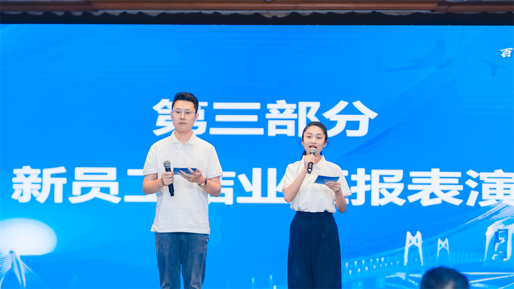 結(jié)業(yè)典禮上,新員工們自編自演了9個(gè)節(jié)目,舉辦了一場(chǎng)難忘的青春匯演?!镀痫L(fēng)了》《新征程 新延續(xù)》《敬業(yè)陣線聯(lián)盟》等精彩節(jié)目輪番上演。朗誦、歌唱、舞蹈等節(jié)目形式多樣,充分展現(xiàn)了招商交科新員工的蓬勃朝氣和青春風(fēng)采,為這次培訓(xùn)添上了星光璀璨的一筆,現(xiàn)場(chǎng)氣氛熱烈,滿場(chǎng)掌聲與祝福不斷。