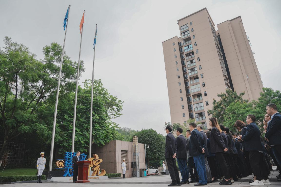 上午9時零5分,招商交科在交科院廣場舉行了升旗儀式。招商交科在家領(lǐng)導班子,各部門及單位員工代表,部分在渝招商系單位員工代表300余人參加儀式。