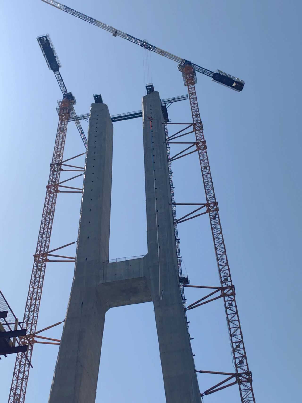 斜拉索安裝是上部結(jié)構(gòu)的關(guān)鍵工程,為確保漢江特大橋首根斜拉索高質(zhì)量安裝到位,萬橋公司組建了一支技術(shù)精湛、經(jīng)驗豐富的纜索安裝團(tuán)隊,配備精良的安裝設(shè)備。在施工準(zhǔn)備階段,積極進(jìn)行人員對接,細(xì)化設(shè)備管理,開展安全培訓(xùn)與技術(shù)交底。在項目部的大力支持和參建各方的共同配合下,迅速解決影響現(xiàn)場安裝的各種問題,確保了首根斜拉索塔端掛設(shè)的順利完成,為項目建設(shè)按下“加速鍵”。