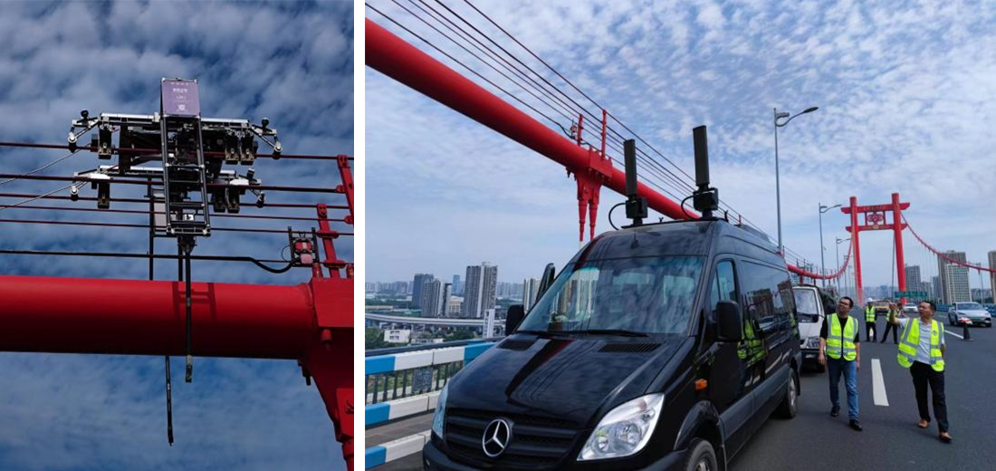 (圖為招商交科研發(fā)的主纜檢測(cè)機(jī)器人與橋檢綜合指揮車(chē))