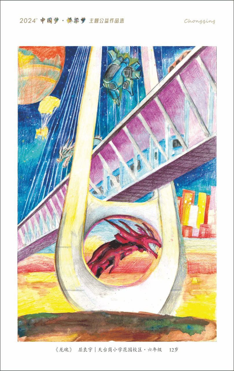 2024年全國(guó)科技活動(dòng)周,招商交科承辦“中國(guó)夢(mèng)·橋梁夢(mèng)”主題公益畫展,從中精選出22幅優(yōu)秀作品制作為公益明信片留念。這些作品以素描、油畫、水彩畫、鉛筆畫等表現(xiàn)形式從不同角度融合展現(xiàn)了“橋都”重慶的橋梁力量與橋梁美學(xué),從不同方面體現(xiàn)了招商交科橋梁設(shè)計(jì)領(lǐng)域的專業(yè)素養(yǎng)和創(chuàng)新精神。其中,《靜謐晨光》《趕水的橋》等作品充分融入了作者的思鄉(xiāng)之情,讓觀者動(dòng)容;《魔幻橋都之東水門長(zhǎng)江大橋》將長(zhǎng)江索道、東水門大橋等標(biāo)志性建筑景觀融為一體,反映出招商交科在橋梁設(shè)計(jì)中對(duì)重慶獨(dú)特橋梁文化和山區(qū)地形地貌的精準(zhǔn)把握,使橋梁真正成為城市的一部分,融入人們的日常;《未來(lái)之橋》則更加富有想象力和前瞻性,它連接了重慶的過(guò)去、現(xiàn)在和未來(lái),將古文化、紅巖精神和科技感融為一體。