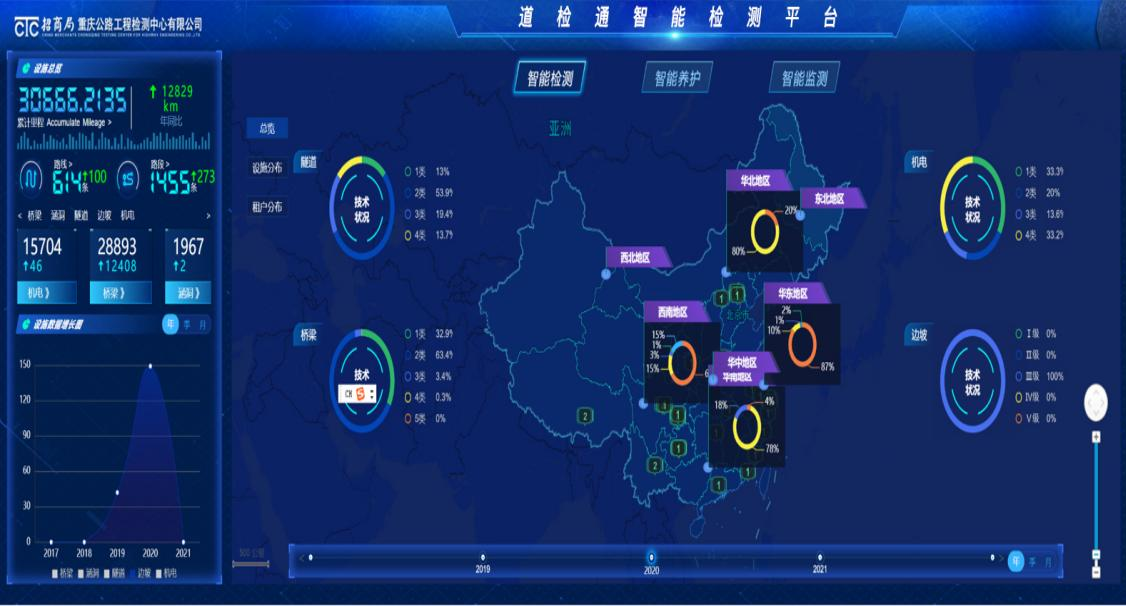 “道養(yǎng)通”以BIM與GIS技術(shù)為引擎,基于北斗、云、物聯(lián)網(wǎng)、智能傳感、大數(shù)據(jù)、人工智能等新興技術(shù),涵蓋數(shù)字路產(chǎn)、日常養(yǎng)護、養(yǎng)護工程、養(yǎng)護計劃、養(yǎng)護物資管理、養(yǎng)護決策等7大應用板塊,包括數(shù)據(jù)中心可視化客戶端、Web管理終端、移動APP三大應用終端,打通運養(yǎng)平臺與應用系統(tǒng)、集團管理平臺、行業(yè)監(jiān)管平臺之間的數(shù)據(jù)通信接口?!暗鲤B(yǎng)通”適用于集團級、省級、長大橋隧公司等不同管理模式,已形成國內(nèi)業(yè)務體系最全、專業(yè)技術(shù)最強、應用范圍最廣養(yǎng)護數(shù)字化平臺。