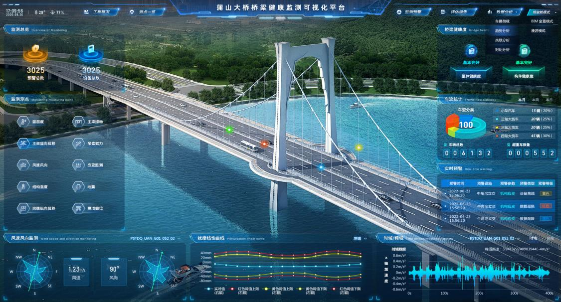 “路安云”普適于橋梁、隧道、邊坡、建筑場館等大型設(shè)施結(jié)構(gòu)安全在線監(jiān)測及預警,采用IoT、人工智能、大數(shù)據(jù)分析等先進技術(shù),集成傳感器、數(shù)據(jù)采集、數(shù)據(jù)傳輸、數(shù)據(jù)預處理、可視化、分級預警、信息發(fā)布、趨勢預測、結(jié)構(gòu)狀態(tài)評估等功能于一體。其中,數(shù)據(jù)采集與傳輸子系統(tǒng)由現(xiàn)場設(shè)備、虛擬監(jiān)控中心、網(wǎng)絡設(shè)備及下位機軟件四部分組成,能廣泛接入主流監(jiān)測傳感器設(shè)備?!奥钒苍啤痹谄者m性和預警分析等方面處于國內(nèi)一流水平。