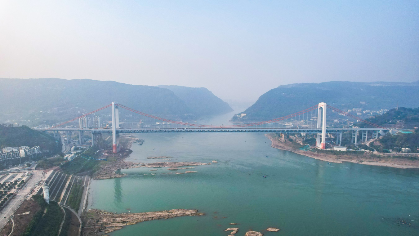 1.國(guó)內(nèi)已建成的最大跨徑公軌兩用懸索橋。
